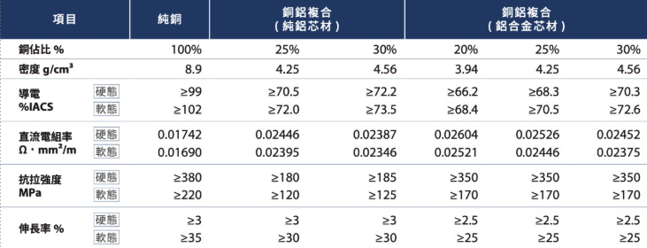 同時具備銅的導電性及鋁的輕量化, 在同樣的使用效率及效能下,降低純銅的使用量 實現降低生產成本
